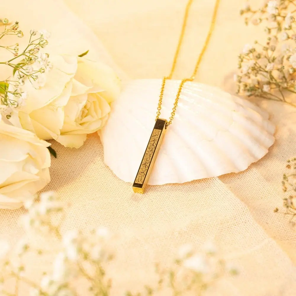 The Ayatul Kursi Necklace features an elegant chain and is available in 18K Gold plated, and Silver.